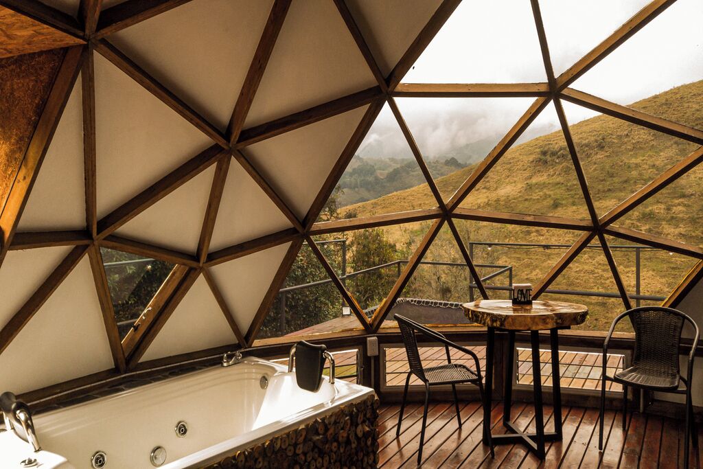 <p><b>Property Location</b><br/>With a stay at Green Valley Glamping Salento in Salento, you'll be in the mountains, within a 5-minute drive of Cocora Valley and Calle Real. This hotel is 0.6 mi (1 km) from Main Square and 0.7 mi (1.1 km) from Mirador Alto de la Cruz.</p><p><b>Rooms</b><br/>Treat yourself to a stay in one of the 5 guestrooms, featuring private hot tubs. Rooms have private balconies or patios. Complimentary wireless internet access is available to keep you connected. Conveniences include desks, and housekeeping is provided on request.</p><p><b>Dining</b><br/>A complimentary continental breakfast is served on weekdays from 7:00 AM to 10:00 AM and on weekends from 7:00 AM to 10:00 AM.</p><p><b>Rec, Spa, Premium Amenities</b><br/>Take in the views from a terrace and a garden and make use of amenities such as concierge services.</p><p><b>Business, Other Amenities</b><br/>The front desk is staffed during limited hours. Free self parking is available onsite.</p>. ((* Lo sentimos, no existe la ficha en el idioma solicitado y se proporciona en EN)