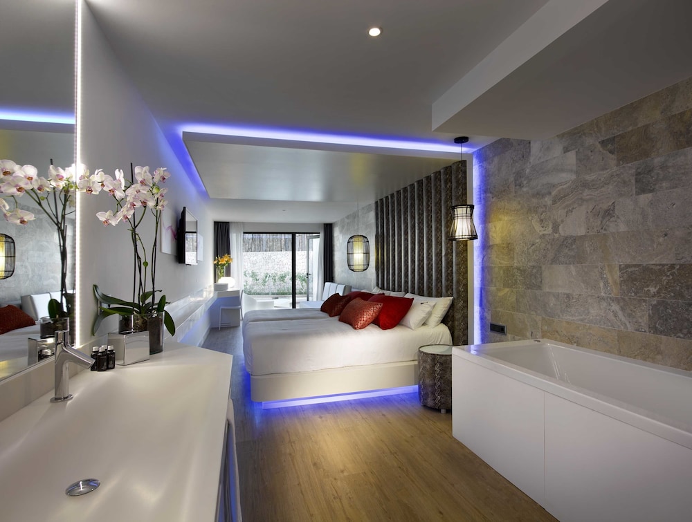 Situado en Sant Josep de sa Talaia, el Hard Rock Hotel Ibiza ofrece una variedad de servicios y comodidades para una estancia confortable. Los huéspedes pueden disfrutar de 3 piscinas al aire libre, un spa de servicio completo con masajes, tratamientos corporales y faciales, una sauna y un gimnasio. Las opciones gastronómicas incluyen 5 restaurantes, 2 cafeterías y 3 bares/salones, incluyendo un bar de playa y un bar junto a la piscina. El hotel cuenta con acceso inalámbrico a internet gratuito, servicios de conserjería, un centro de negocios y una recepción abierta las 24 horas. Para eventos, hay un centro de conferencias y 2 salas de reuniones. Las 493 habitaciones con aire acondicionado ofrecen estaciones de conexión para iPod, minibares, balcones privados amueblados, televisores de pantalla plana de 42 pulgadas con programación vía satélite y baños privados con artículos de tocador gratuitos y secadores de pelo. Se ofrece servicio de habitaciones y servicio de limpieza diario. El estacionamiento en el lugar es limitado. El hotel está cerca de la playa de Bossa y otras atracciones. Los servicios incluyen una tienda de regalos/souvenirs, servicio de venta de entradas, consigna de equipaje, alquiler de coches, cajas de seguridad y servicio de lavandería. Solo se permite fumar en áreas designadas. Los huéspedes pueden disfrutar del desayuno en el establecimiento. El hotel también ofrece un salón de belleza, sala de vapor y bañera de hidromasaje.